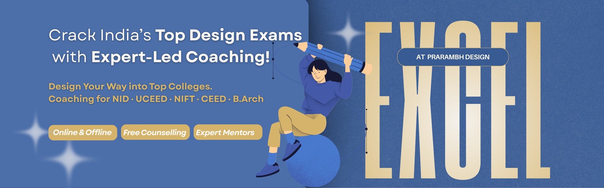 Complete prep for NID, NIFT, UCEED, CEED, B.Arch & NATA — Design Aptitude, Creative Tests, Studio Prep & Portfolio, guided by industry experts. Learn, create, and succeed with confidence!